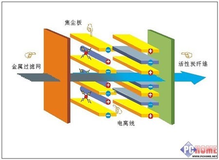靜電集塵凈化技術原理是通過電子技術使用電子電荷,空氣凈化器中有相反電荷,這兩個電荷互相吸引,捕捉空氣凈化器中的粒子,把粒子吸收到收集板,并把它們從空中清除。靜電集塵系統必須設計良好以便清理,但若能方便清洗,是一套相當便宜有效的方法,而且靜電集塵使用的高壓電可以破壞細菌病毒,也多少有除臭及分解有機氣體的效果;但缺點是清洗困難,而且容易產生臭氧,必須妥善設計讓臭氧排出量降至安全濃度以下。